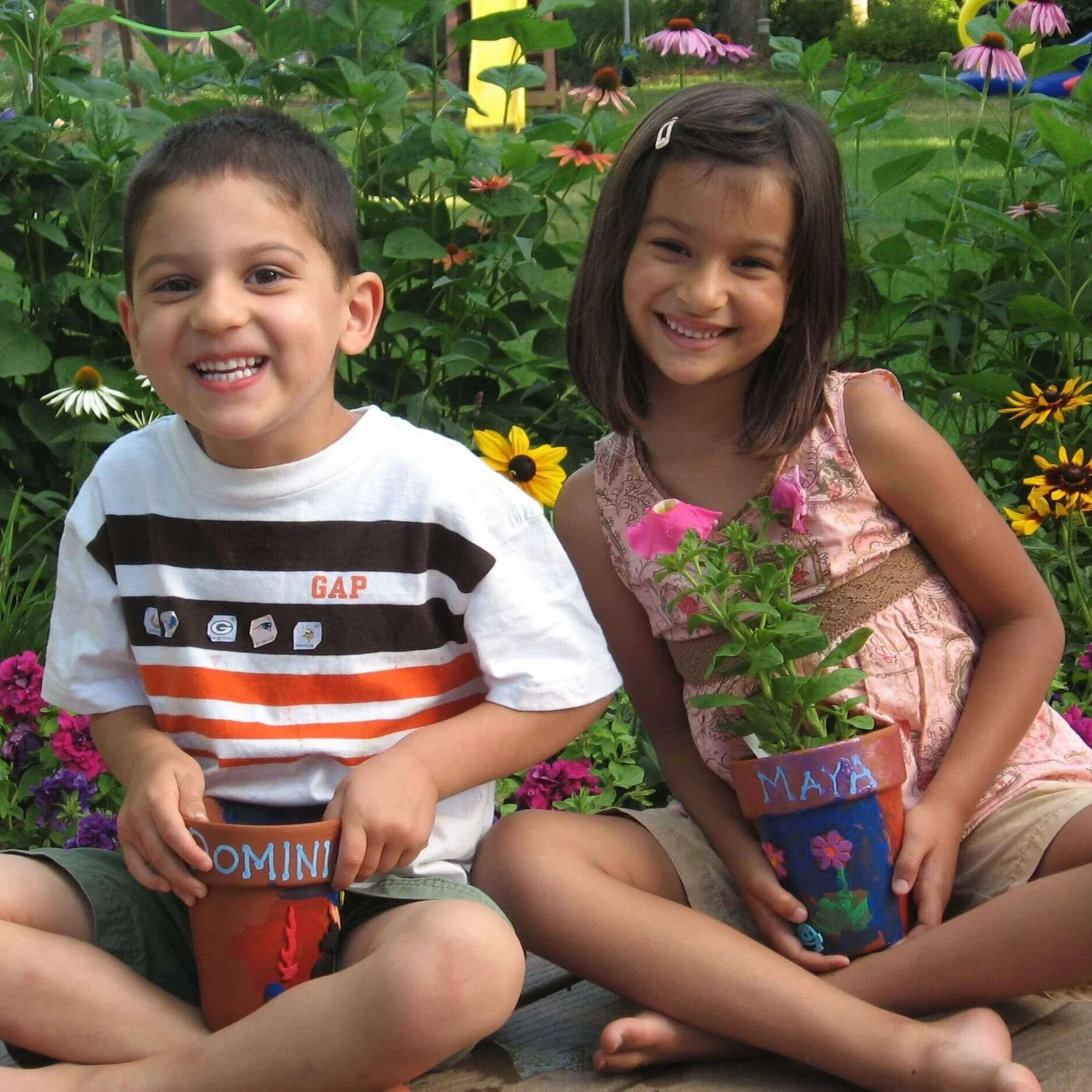 I am very proud of my family. I am married to Kevin, my college sweetheart. He is a very patient and kind middle school math teacher! I am proud Mom to Maya and Dominic. Here’s a picture of when they were both shorter than me, carrying out Mom’s wish of planting flowers. I am also very proud of Henry, our fun-loving, kitchen floor cleaning cockapoo dog.